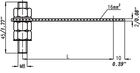Aardlitze flexibel uit koper vertint , met opgedrukte contacthulzen