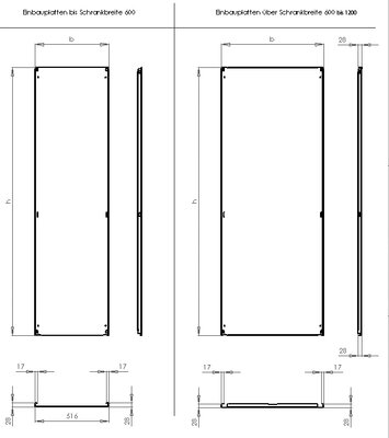 Montageplaat tot kast breedte 1200 mm met C-kanting. Voor kast breedte 1600/2000 mm wordt de montageplaat met U-profielen versterkt.