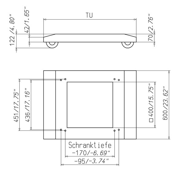 Passend voor 600 mm brede kasten met een diepte van 600 en 800 mm