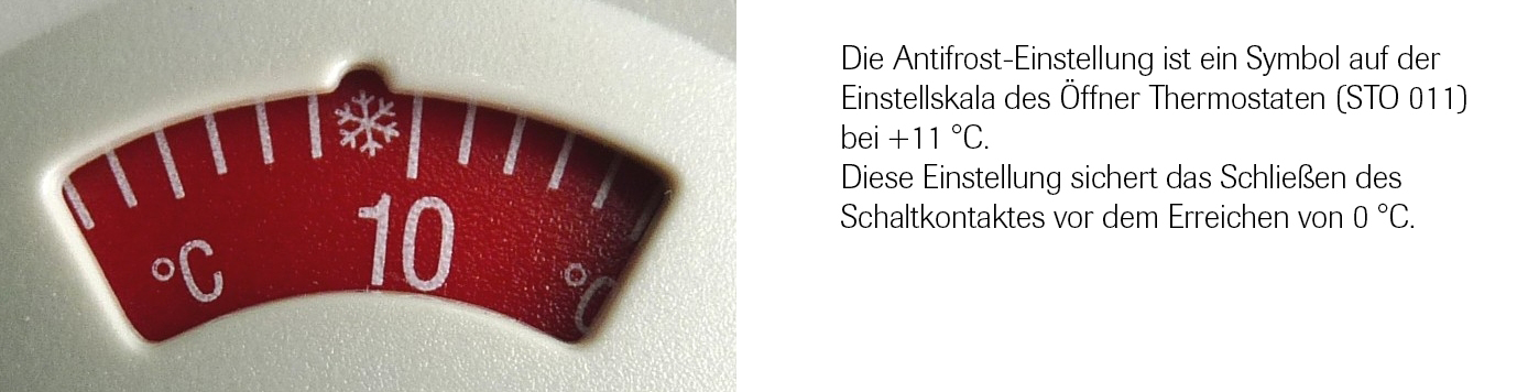 Deze mechanische thermostaten zijn tweepuntregelaars met kleine hysterese. Het instelwiel van de opener-variant heeft een antivries-instelling. De behuizing zorgt voor een optimale lucht oncirceling van het bimetaal.